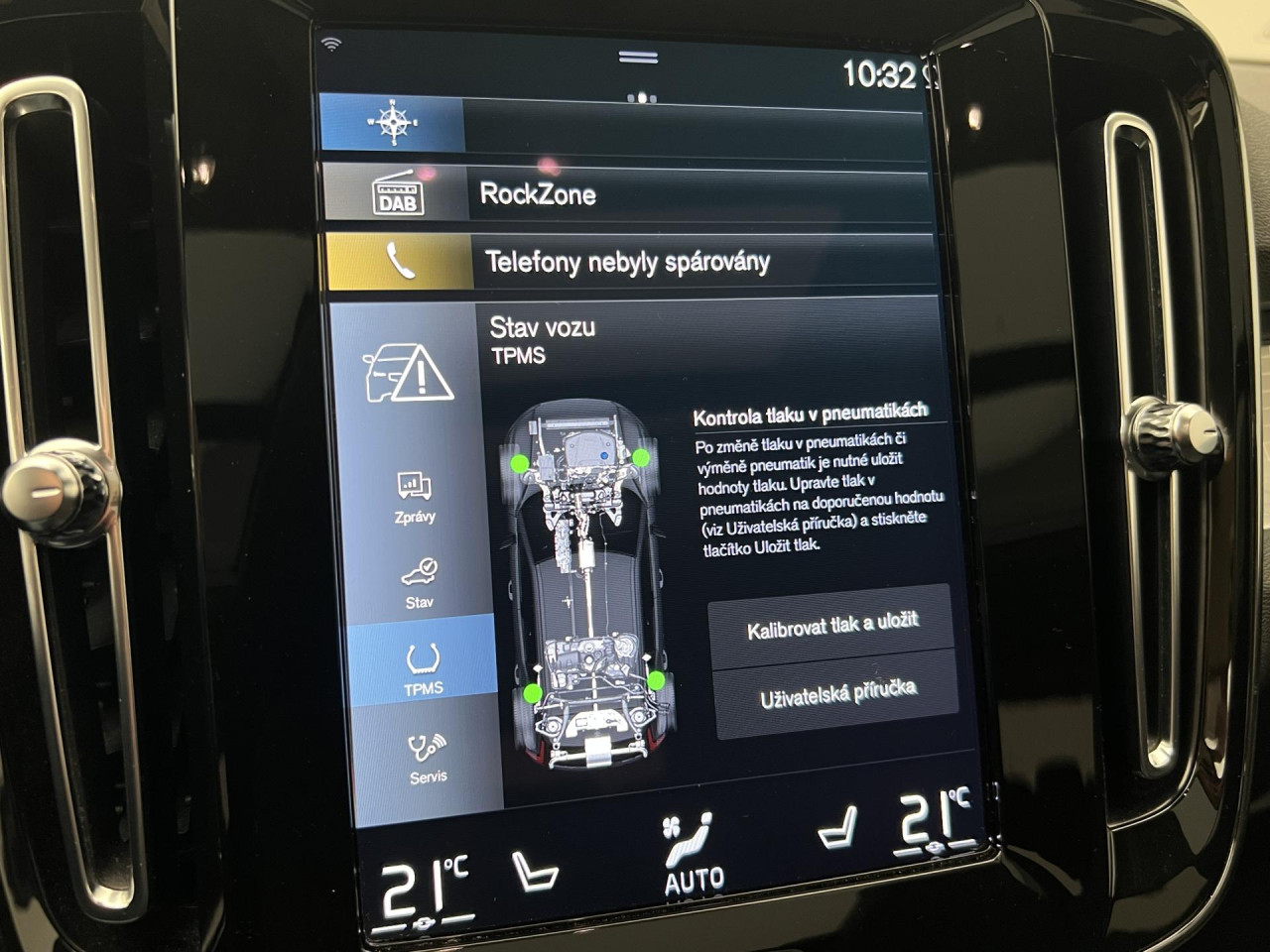 - senzor tlaku v pneumatikách